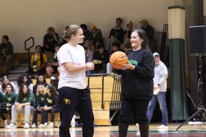 - ‘Falcons Cold Rush’ turns green for one lucky studentThe first winter sports pep rally “Falcons Cold Rush” was a tremendous success on Thursday night at the Rec Center. The gymnasium exploded with Green and Gold pride and unmistakable electricity, putting the winter student-athletes on full display and celebrating them in front of an enthusiastic crowd of fellow students, faculty, and staff. “The energy in that gym was absolutely incredible,” said Fitchburg Athletic Director Matt Burke. “It was a phenomenal night to honor our winter student-athletes. That level of support truly shows the strength of our campus spirit.” Representatives from all the winter athletic teams – men’s ice hockey, women’s club ice hockey, men’s and women’s indoor track, and men’s and women’s basketball – were part of the event, which also included performances by the Cheer Team, Dance Club and first-year Falcons Drumline. For additional, heart-thumping excitement, the evening featured an unforgettable moment when one lucky student earned the chance to take a single half-court shot for the ultimate prize: tuition and fees for the Spring 2026 semester. Taking the spotlight, freshman softball player Kiley Connors was selected and stepped up for the half-court shot. “I was definitely nervous when getting selected,” said Connors. “I only signed up since my friends were. I was not expecting to be picked.” While Connors’ shot missed the hoop, the excitement continued. For participating in the challenge, Connors received a $1,000 scholarship for the upcoming semester. “We are incredibly proud of Kiley for stepping up and demonstrating such fantastic school spirit during the half-court challenge,” said Fitchburg State President Donna Hodge. “While she didn't sink the basket, her willingness to take that high-pressure shot embodies the courage and determination we celebrate in all of our students. We are absolutely thrilled to award her a $1,000 scholarship for the spring semester.” Connors said that she was surprised to win anything. “It is very much appreciated,” Connors said. “That caught me off guard and it means a lot.” Keep up with all the university’s teams by visiting fitchburgfalcons.com. Photo by Student Photographer Kaleigh Papierski.